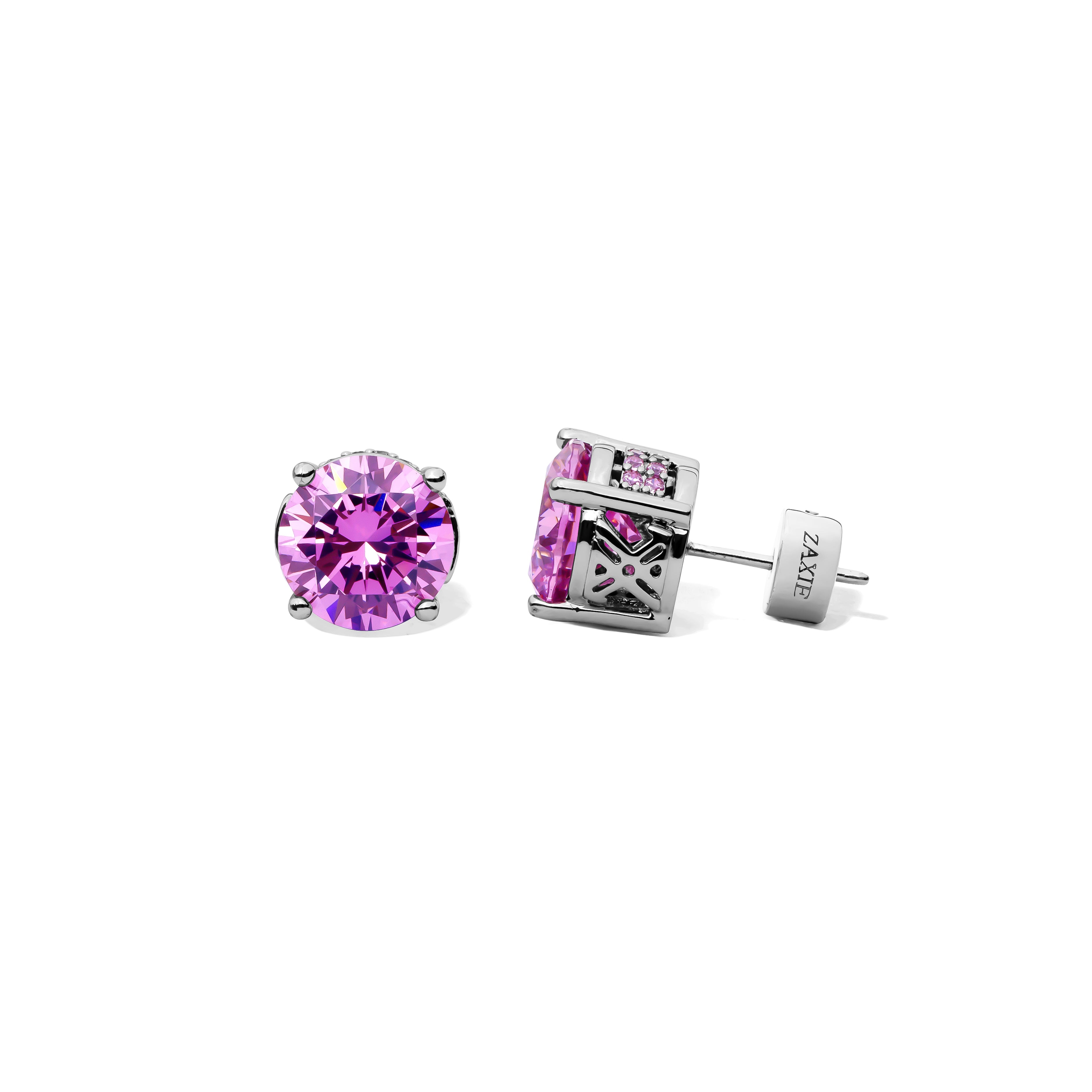 Experience the luxury of our ZAXIE Signature Pave set Studs,expertly crafted with a perfected pave design and the subtle ZAXIE logo setting. These custom-designed cubic zirconia studs exude elegance and sophistication, featuring unique custom backs that ensure a secure and comfortable fit. Perfect for any occasion, these studs add a touch of refined glamour to your jewelry collection, making a statement that is unmistakably yours. Offered in Golad and rhodium plating and clear, opal, rose and champagne AAA CZ's.